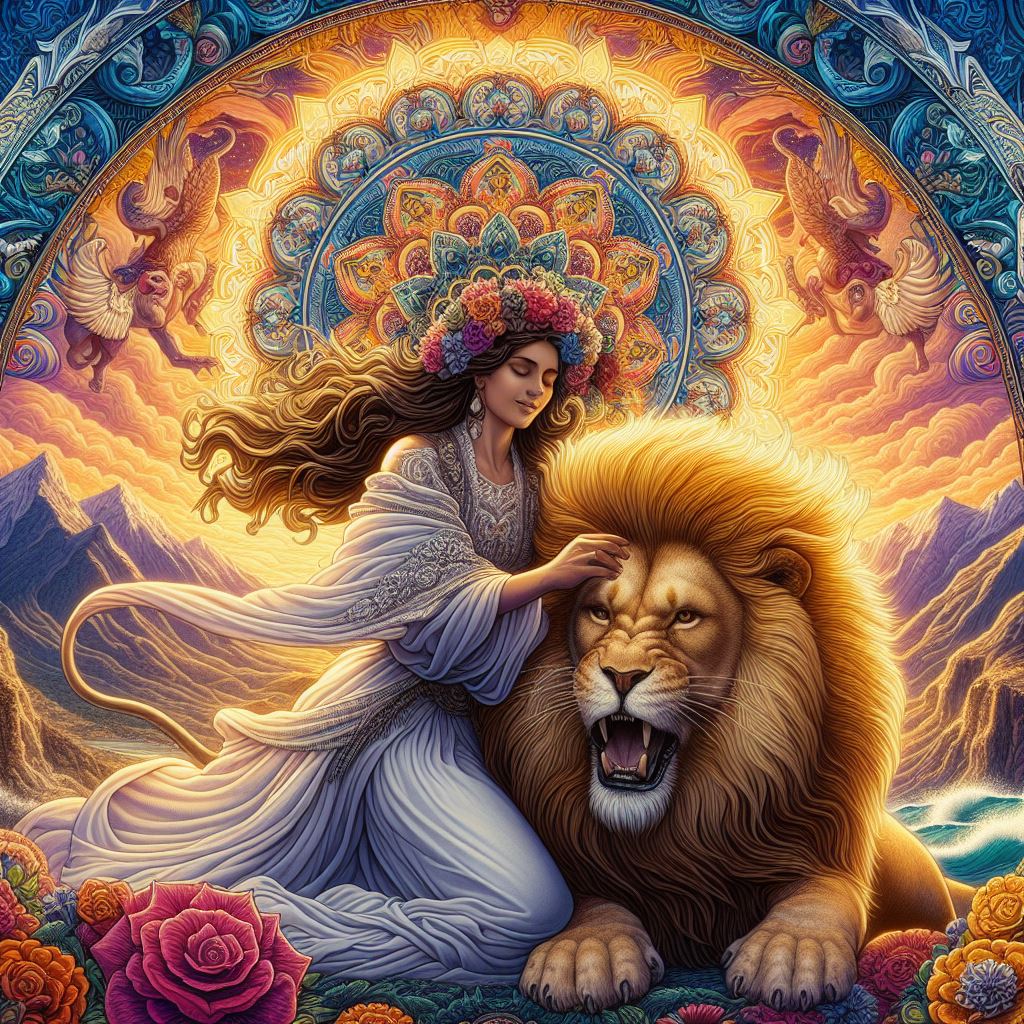 Una mujer, bajo el resplandor del sol, acaricia a un león con tranquilidad y determinación. Este es tu recordatorio de que tienes el poder de domar tus propias pasiones y superar cualquier dificultad. La Fuerza te anima a utilizar el autocontrol y la suavidad para alcanzar tus