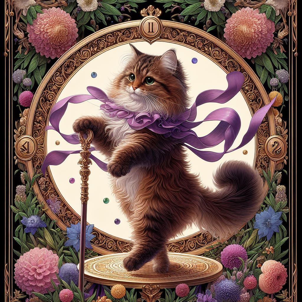Cuando la carta del Mundo aparece en tu vida, es como alcanzar la cima de un rascacielos felino y contemplar todo desde lo más alto. Anuncia que tu jornada actual llegará a su culminación, pero ¡no temas, intrépido gato! Este no es el fin, sino el inicio de un nuevo ciclo, lleno de promesas y cambios inevitables.