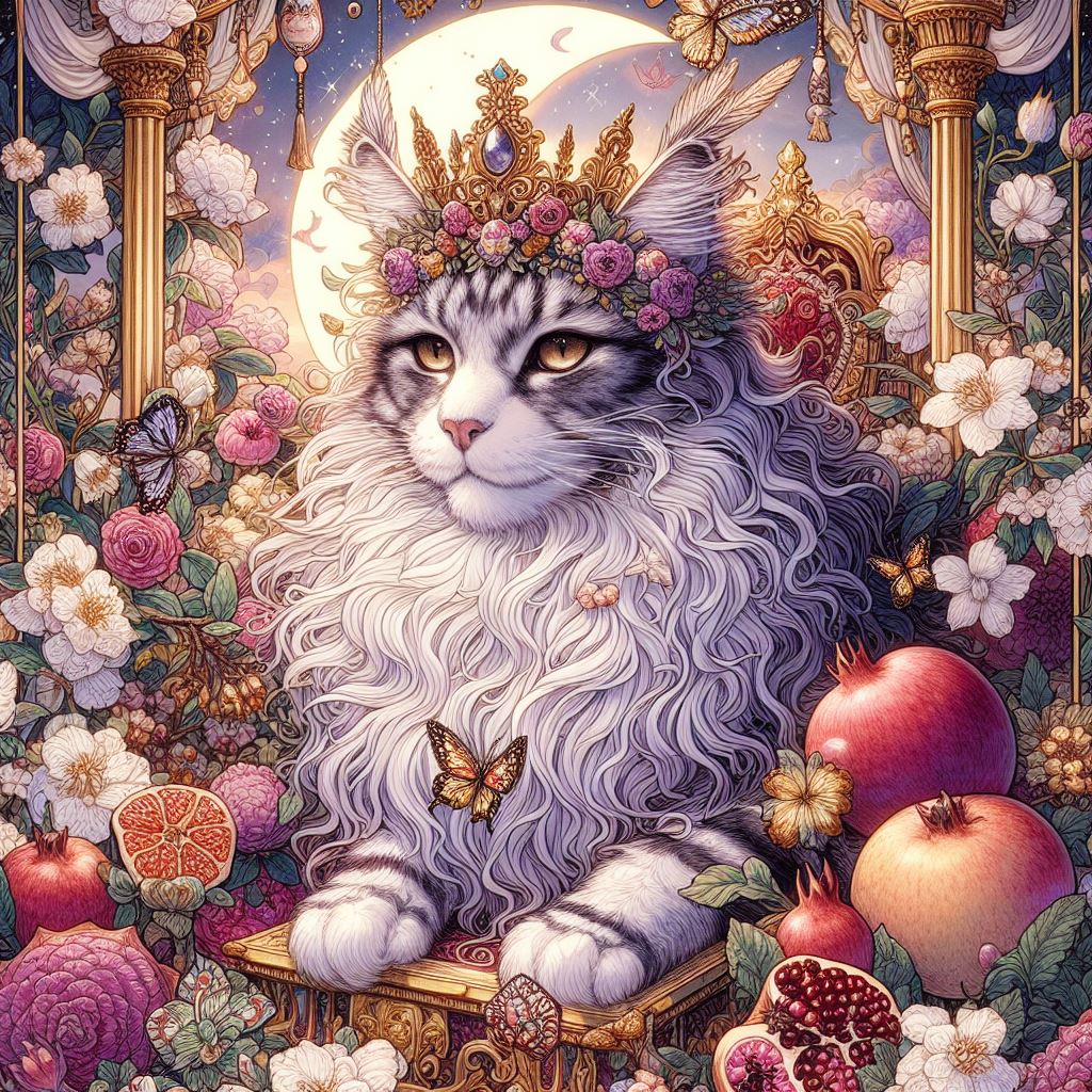 La Emperatriz te susurra desde su trono de elegancia y abundancia, te invita a sumergirte en el arte mágico de cuidar de ti mismo con la gracia de un felino que acicala su pelaje al cálido resplandor del sol.